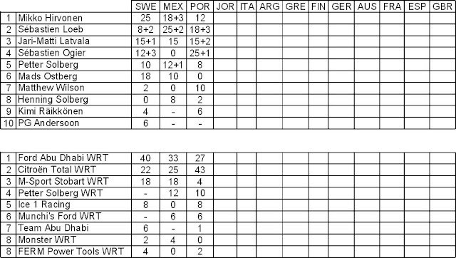 Τελική κατάταξη του Ράλι Πορτογαλίας: